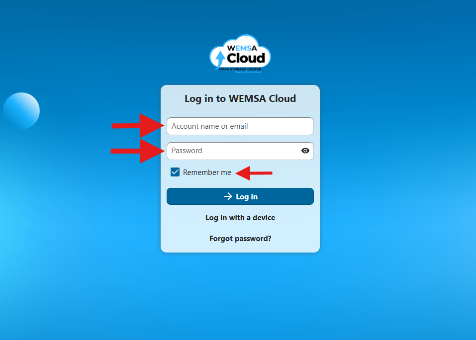 Use this page to get started with WEMSA Cloud, log in through the web portal, manage user accounts, and update or reset passwords.
