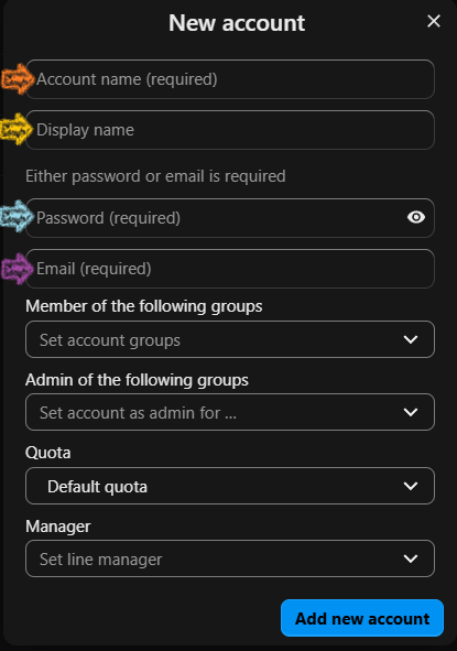 - Click Add new account.