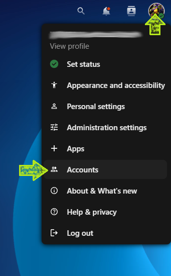 - Click the profile icon in the top-right corner and select Accounts.