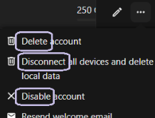 - Select the action you want: Disable, Delete, or Disconnect.
