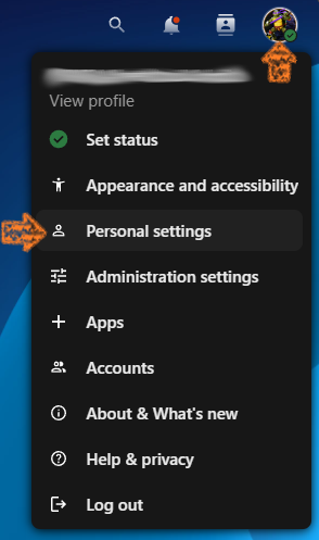 - Click the profile icon in the top-right corner and select Personal settings.