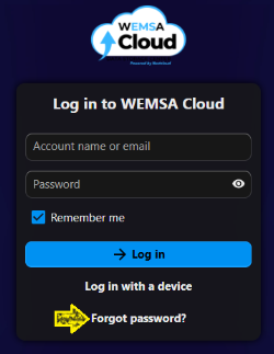 - On the WEMSA Cloud login page, click Forgot password? at the bottom of the login box.