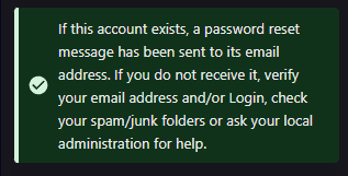- Click Reset password (the green box below should appear if an account using that e-mail address exists).